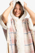 Soft and feminine: extra‑thick 100% polyester, fully fleece‑lined, with vegan, cruelty‑free faux fur trim and a blush check pattern.